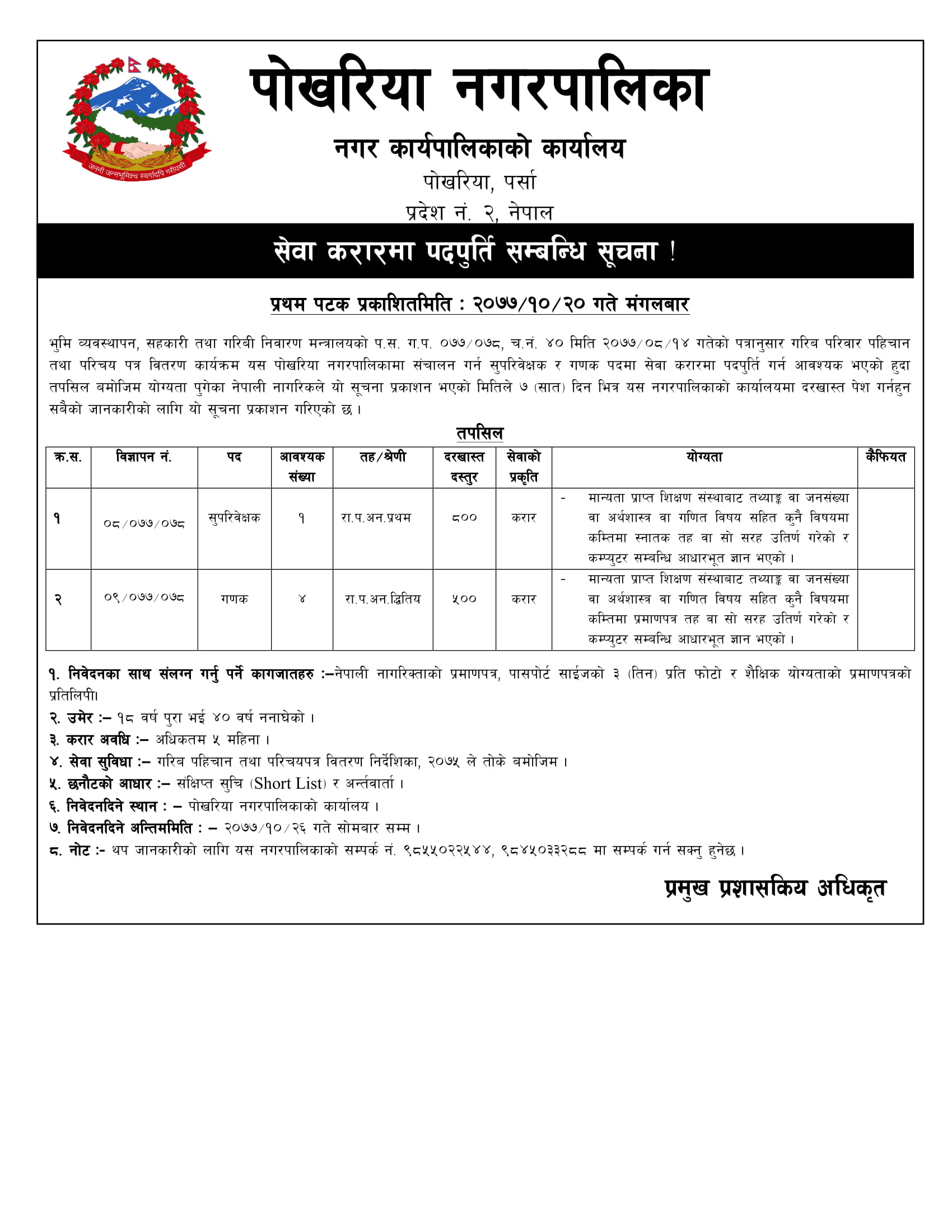 सूचना! सूचना !! सूचना !!! गणक तथा सुपरीवेक्षक हरुको अन्तर्वार्ताका लागि सुचना प्रकाशन गरिएको सम्बन्धमा।